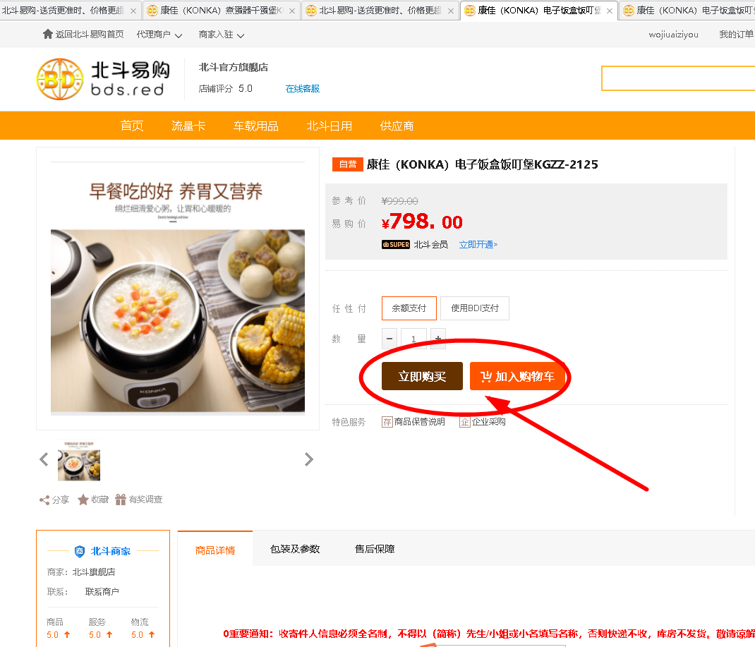 5、 各会员在确定需购买的商品后可加入购物车或直接点击购买。